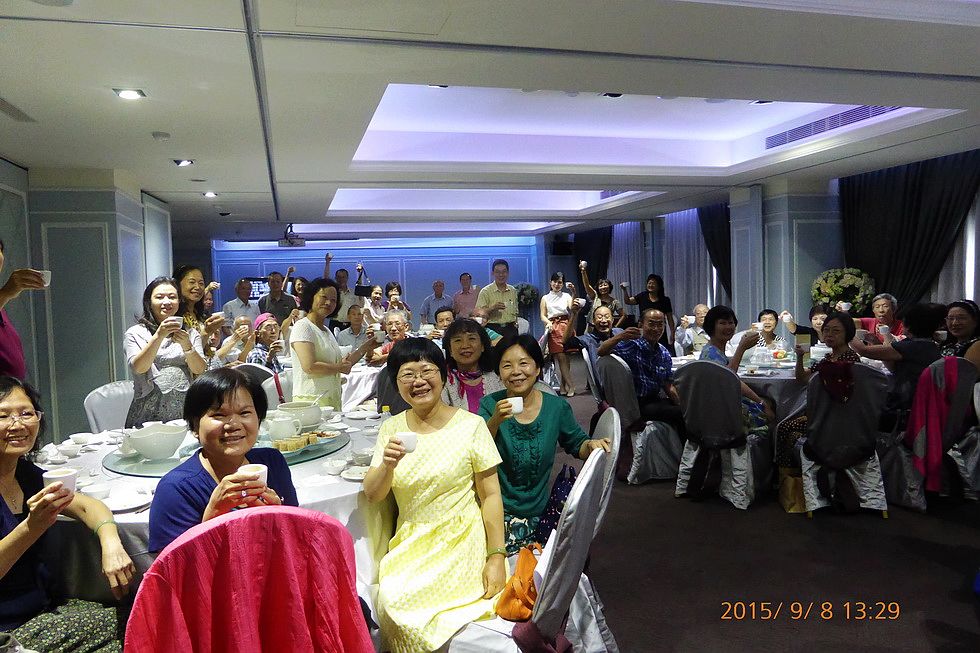 今日在高雄市麗尊酒店6樓聚餐,『緣生可貴』把我們聚集一起,從黑髮到白頭,奉獻於杏壇數十年,退休後不定期聚會話家常,及談養生之道。今天參加的有56位,最年長的蘇清緞老師都已92歲,他從不缺席各項活動,今天他還高歌一曲,曾建順校長,張添庸校長連同歷屆會長 ─洪瑞良主任,柯天賜主任,林麗敏老師,鐘棋楠主任(現任),在他們及各屆總幹事,各組組長,帶領下每每聚集都開心的不得了,下午2:30才紛紛散去,有的老師續趕第二場~當各單位義工,盡自己一份力量貢獻於社會,真是個快樂之秋天午后 ─謝 平 ─
