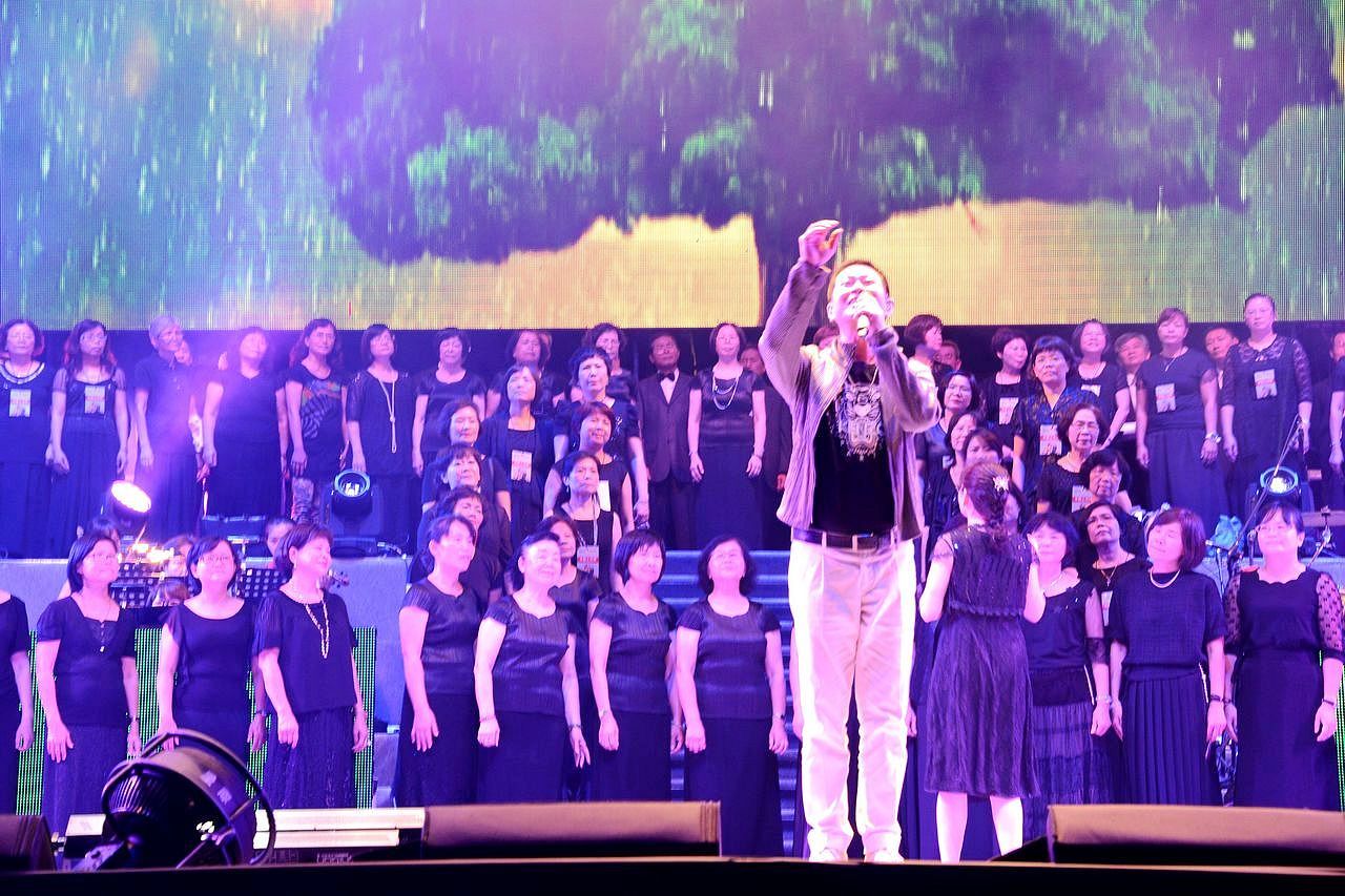 眾星拱月∼ 榮耀返鄉:蔡小虎高雄巨蛋演唱會,雄商校友合唱團榮獲𨘋請為其二首歌合聲:一、川流不息(日文)二、永遠醉置你身邊(台語),二天的彩排暨5月31日晚演唱,獲得主辦單位的贊賞!另外二團為:高雄市退休教師合唱團、高雄市佳音合唱團,合計121人由張碧綢老師統籌指揮,共同演唱出優美、悅耳、動聽的合聲。
