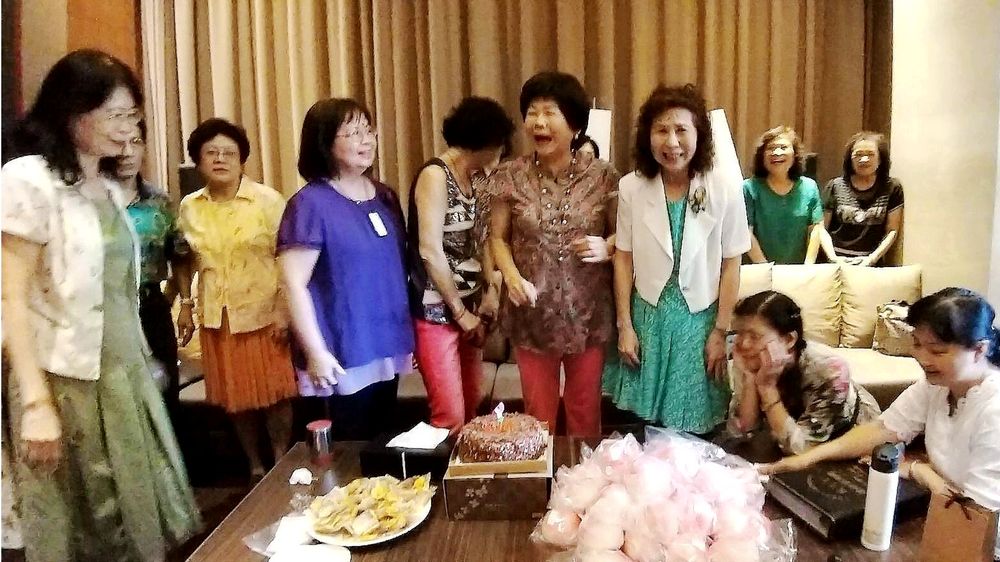 【雄商校友合唱團同樂會】為了因參加高雄氣爆五週年追思紀念會,大家練歌很辛苦,所以安排同樂會,8/10下午從都廳苑二樓傳來陣陣熱鬧,悦耳的歌聲, 那是我們 雄商校友合唱團的同樂會,個個是高手,一直歡唱到五點左右才離去,今天參加的團員30人以上,桌上擺滿了零食、飲料壽桃,並為八月份的四位壽星祝壽,一個大大的黑森林巧克力蛋糕味道奇佳無比。唱歌是身體健康的第一要素,歡迎各位校友結及愛唱歌的朋友來加入我們的行列,我們是一個優質又快樂的合唱團 ─謝平─