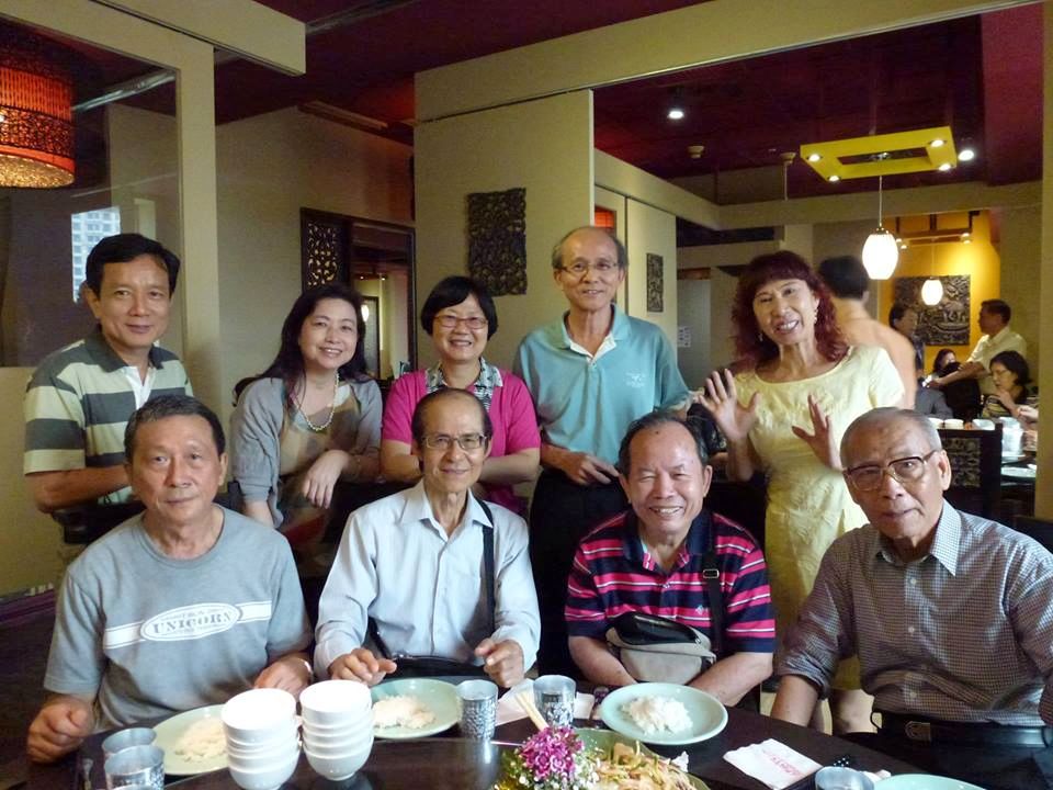 【與雄商第二屆60年畢業五年制551班同學相聚歡】,因昨天(6日)在科工館由張添庸校長牽線,找到當年551之校友,五年制只有3屆(小學畢業後就學5年),分別有5,4,4班,共13班,因為不知參加校友大會之管道。今天剛好他們開同學會,我得到消息,另一友人壽宴,我半途先行告退,馬上趕到台南擔仔麵餐廳與他們相認。 我58年任職雄商教書,所以有些校友還認得我,一個小時下來,憶起往事,特別有趣,他們五年的導師是杜森豐老師(教數學),最後決定開始計劃邀約所有五年制校友,明年3月8日(每年第二週日)回母校參加校友大會。今天我收穫最多,開心極了。PO張合照,另一張是與帥哥班長吳邱永振合影。 ─謝 平 2014.06.07─