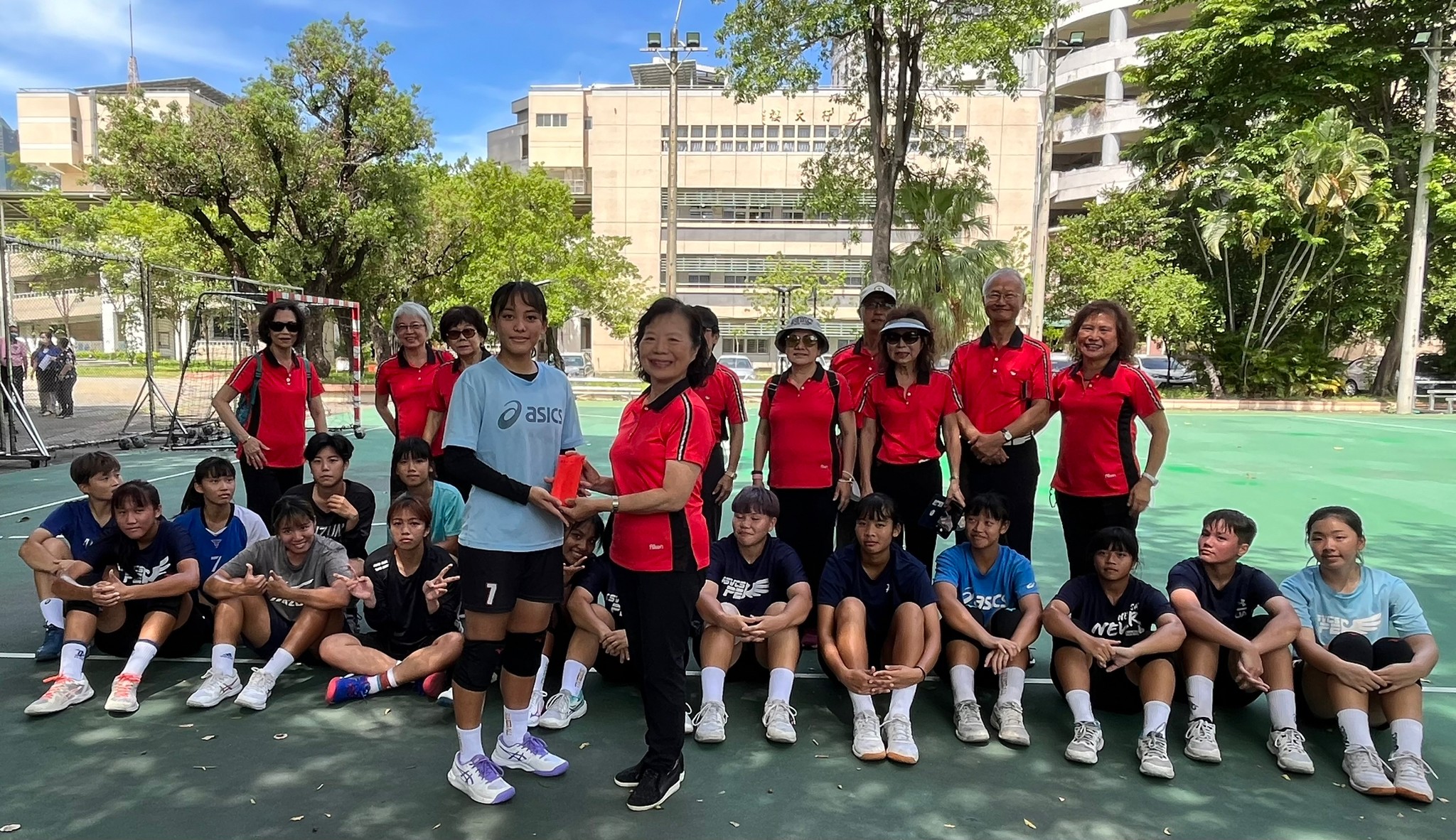 112.7.17于理事長帶領校友會成員前往母校交付相關贊助款與手球隊。 認捐排汗衫104900元、現金10萬元。後經5天比賽,榮獲2023年匈牙利國際手球錦標賽,〔雙料冠軍〕, 分別為:U18組及公開組〔冠軍〕。