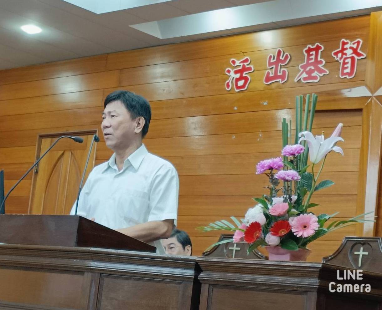 高雄高商第五屆校友王能祥近日由美國回台灣,見見老朋友,他今年已經91歲了,22日於楠梓基督教會舉行一場內容豐富,以鏗鏘有力之聲演講,雄商校友會于惠香理事長率理監事代表與三位榮譽理事長何信,鐘棋楠