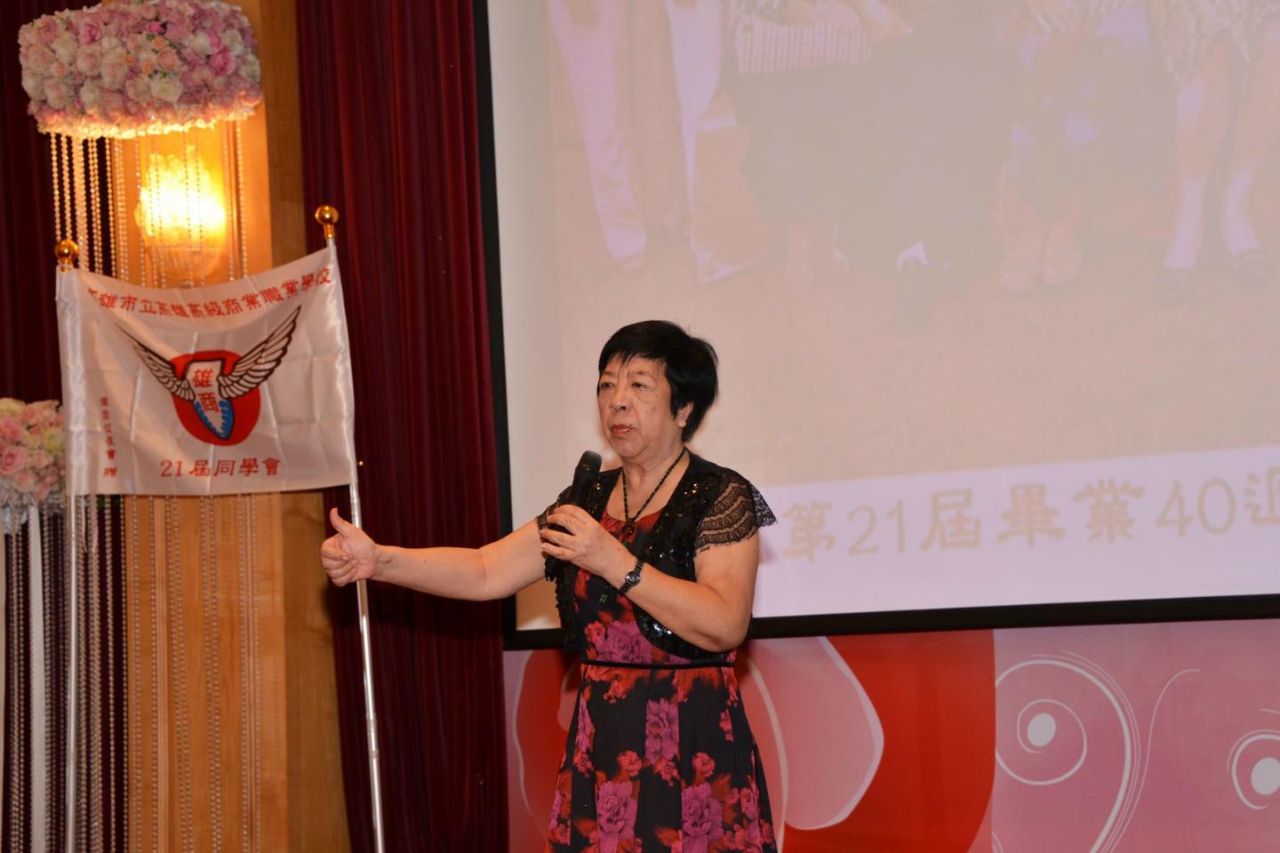 【雄商21屆畢業45年同學會】快樂、溫馨的秋天午后,在國際寒軒大飯店B2傳來陣陣之歡笑,彼此問候聲,今年之主席8班莊芳姿特別由澳洲趕回,總召是黃添裕榮譽理事長,司儀8班黃淑惠,主持人由林知鴻,葉麗華掌控全場,妙語如珠,在各班眾召集人努力下,由全省各地參加難得之同學會。也邀請了當年教導的師長:蘇清緞師、顏清松師、蔡仁壽師、林國泰師、柯政博師、劉克修師、鐘棋楠師,真是不容易。母校現任張輝正校長特別蒞臨祝賀,另外三位特別來賓:校友會謝平理事長、林高生榮譽理事長、何秀理總幹事,全部114人,節目精彩,錄影,拍照,愉快的週末。─謝平─ |