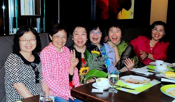 4月15日晚上高雄商旅2F某個角落,熱熱閙閙地共有26位同學参加,加上眷屬及李蓁導師夫妻,謝平老師共三十餘人,大家多年不見,見面擁抱,吱吱喳喳訴說多年之變化,因為導師遠嫁新竹,所以大規模之同學會今年才促成,個個事業有成,家庭美滿,有位已升為婆級人物,時光過得真快,看到這些過去18歲的青春少女,如今亦步入中年了,但仍不失當年活潑,開朗之模樣,當老師真好,我們最大之財富就是學生。 ─謝 平─