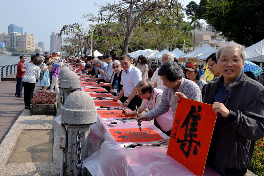 1666年前農曆3月3日,王羲之與羣賢少長共同留下膾炙人口的歷史盛事,更譜出名作《蘭亭集序》。古今興懷一致。 何創時書法藝術文教基金會於1666年後的同一日,2019年4月7日(農曆3月3日),邀請書法家張炳煌教授寫下「流」字、前故宮副院長何傳馨教授寫下「觴」字、葉匡時副市長寫下「曲」字、文化局王文翠代理局長寫下「水」字、何創時書法藝術基金會董事長何國慶寫下「列」字、知名文學家張大春先生寫下「坐」字,同時還邀請了全國324位書法名家與書法愛好者,共同完成一件《蘭亭序》作品,寫下愛河揮毫歷史上的一筆。並和民眾一起臨水揮毫,向王羲之致敬,沿著愛河畔, 綿延近400公尺。共同書寫屬於這個時代的「愛河集序」。(主辦單位:財團法人何創時書法藝術文教基金會) |