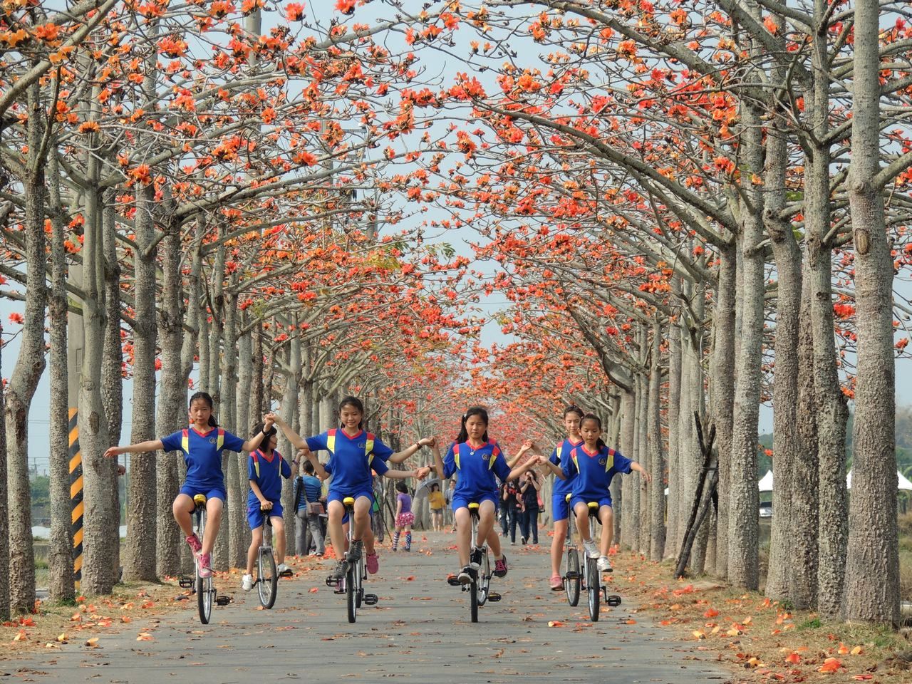 【白河木棉道】台南市白河區林初埤每年三、四月間,木棉花開滿了木棉道,火紅的木棉花垂掛在道路兩旁,猶如人間仙境,成為攝影好手的熱門拍攝景點。 |