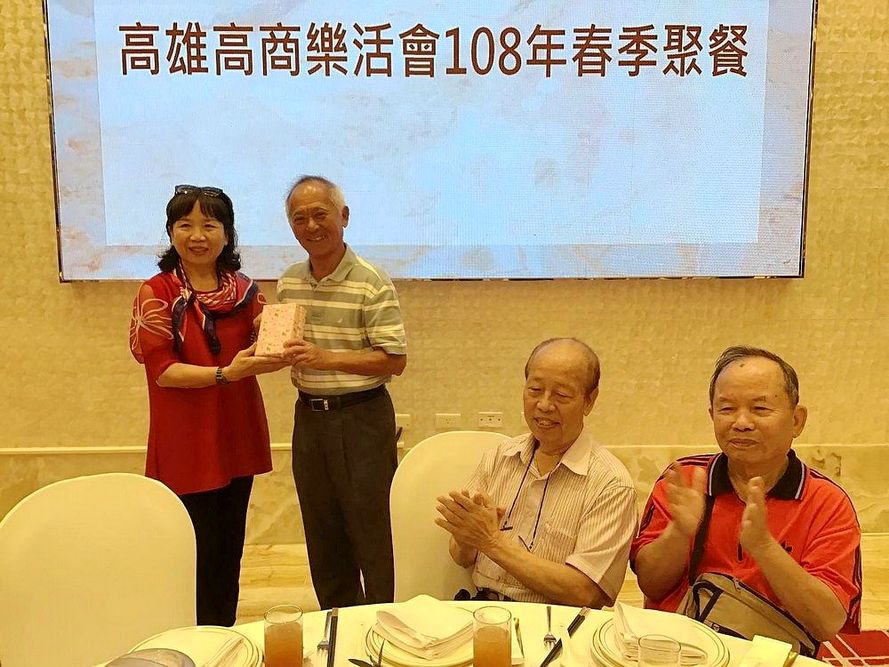 【108年雄商樂活會春季聚餐】於4/9(星期二)中午11點於林皇宮(博愛二路99號2F皇席廳)舉辦。並舉行新(張秀珠主任),舊(鐘棋楠主任)會長交接儀式,今天共出席43人(含2位家眷),陳榮華校長特由金門飛高参加,另有高龄95歲的蘇清緞老師及台北南下之田貭信組長,余昭琳師及夫婿出席,大家許久不見,享受美食之外,不時彼此關懷健康,交换保養之道,歷屆會長:洪瑞良主任,柯天賜主任,林麗敏師,鐘棋楠主任全數到齊,感謝所有會長及組長們之努力下,我們雄商退休員工是最團結的群組,参加活動,開開心心,下午2:00左右结束活動,期待下次再相會。